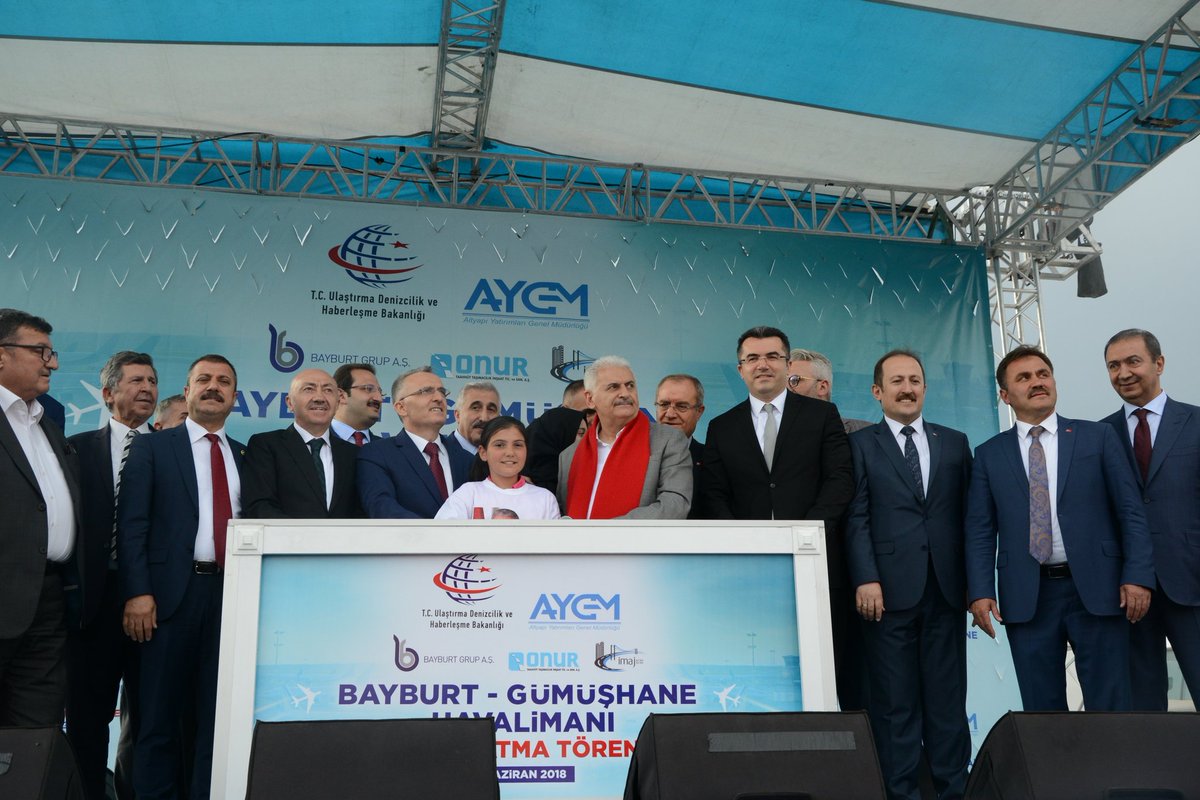 Başbakanımız @BA_Yildirim Bayburt-Gümüşhane Havalimanının temel atma töreninde millete hitap ediyor. Hava Yolunu Halkın yolu yapan Cumhurbaşkanımıza ve Başbakanımıza sonsuz teşekkürler. pic.twitter.com/tVHZ6Sklc4