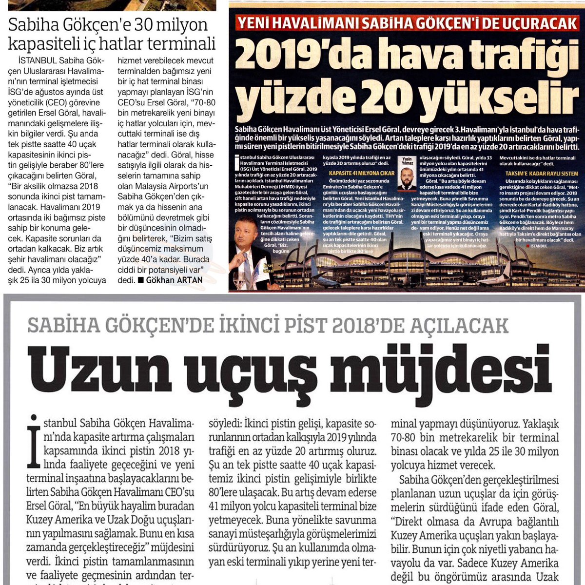 İSG CEO'su Ersel Göral'ın havalimanı muhabirlerine yaptığı açıklamalar bugün gazetelerde geniş bir şekilde yer buldu. http://pic.twitter.com/fE6BLKAgxI